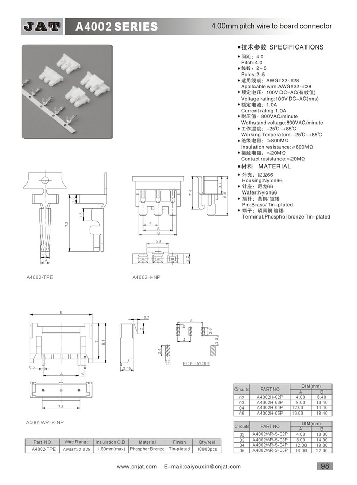 •   JST BH帶扣連接(jiē)器(qì) A4002