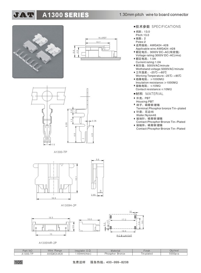 •  JST顯示器連接(jiē)器 A1300