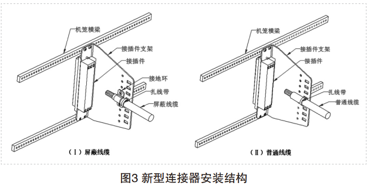 (2)通過設置接地環,將(jiāng)屏蔽線的屏蔽層(céng)直接與支架連接,通過 支(zhī)架安(ān)裝到機箱橫梁上(shàng)而實現屏(píng)蔽層(céng)與機殼(ké)的充分連接,達到良好 的接地效果,而(ér)且可在不加裝其他線纜固定支架的情況下,直接(jiē)在此連接器支架上使用紮(zhā)線帶(dài)固定線纜。