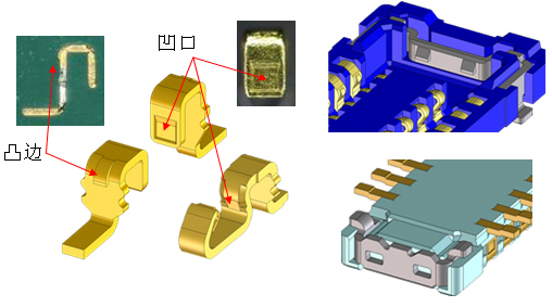莫手機組裝完畢到(dào)用戶(hù)端,在日常的跌撞、摔(shuāi)落的情況下(xià),連接各個主要(yào)器件考驗的是(shì)板到板的保持力,一旦保持力不夠,被衝擊後公母連接器(qì)接觸斷開,導致屏幕顯(xiǎn)示、攝像頭、鍵盤等器件與主板連接失(shī)去反應,特別在現在板到板發展(zhǎn)成(chéng)越來越薄,如何增加板到板的保持力成為手機(jī)廠商要(yào)求和(hé)連接器生產廠商的共同(tóng)問題。基(jī)於以上這些原(yuán)因,莫(mò)仕針對(duì)超薄型板到板做(zuò)出卓越的設計:接觸端子凹凸鎖扣(kòu)和爪子鎖