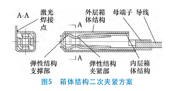 由以上分析提出兩種解決高溫下端子夾緊力衰減的設計方案:彈性結構二次夾緊方案和箱(xiāng)體結構二次夾緊方案。